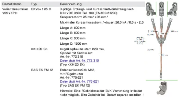 Three-pole, reduced Cable Cross-Section with Ball Head Caps