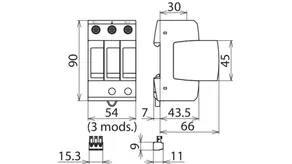 with three-step d.c. switching device, width: 3 modules