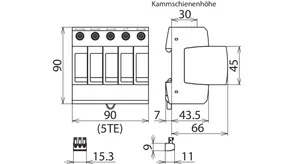 with three-step d.c. switching device, width: 5 modules