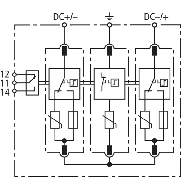 Nominal discharge current (8/20 µs) [(DC+/DC-) --> PE] (In ) 12.5 kA