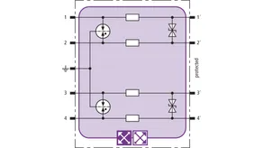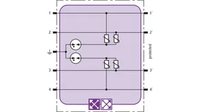 Space-saving surge arrester module with RFID LifeCheck for protecting two pairs of stranded signal interfaces. If LifeCheck detects thermal or electrical overload, the arrester has to be replaced. This status is indicated contactlessly by the DEHNrecord LC / SCM / MCM reader.