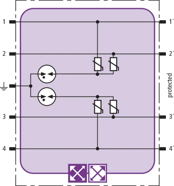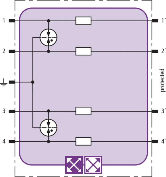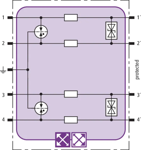 All protection elements are integrated in the plug-in module and are monitored by means of LifeCheck.