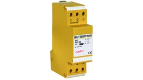 Energy coordinated combined arrester for protecting the voltage measuring circuit (yellow colour). Pluggable remote signalling contact (break contact) for overload indication (temperature monitoring of the discharge paths). Installation in sheet metal housing recommended. Low impulse sparkover voltage due to capacitive control.