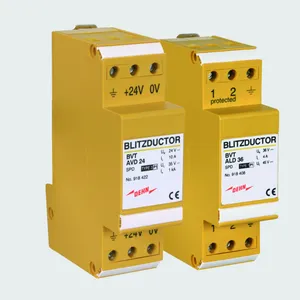 Energy coordinated combined arrester for protecting the rectifier in the protective circuit (red colour). Pluggable remote signalling contact (break contact) for overload indication (temperature monitoring of the varistors). Installation in sheet metal housing recommended. Low impulse sparkover voltage due to capacitive control.