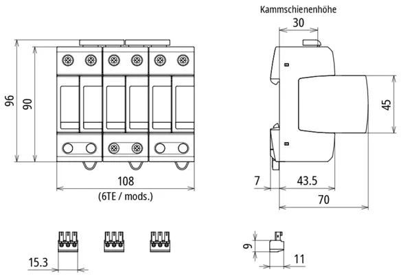 for DC applications, width of 6 DIN modules
