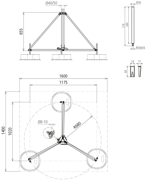 | Number of concrete bases | 3-12 blocks, 17 kg each |