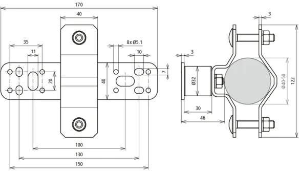 Fixing [8x] Ø5.1 / [4x] 7 x 10 / [2x] 11 x 20 mm