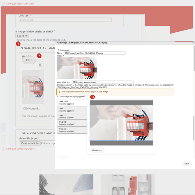 10. Über "Crop image" wählst Du nun die entsprechenden Ausschnitte für die einzelnen Seitenverhältnisse aus.