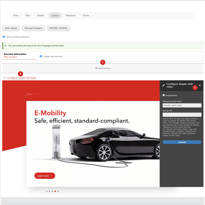 3. Die Section kann jederzeit über "Configure Header with slider" bearbeitet werden.