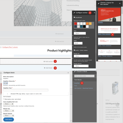 3. Füge der Section die Komponente Headline über "add block" hinzu. Die Größe der Headline ist an dieser Stelle "H3".