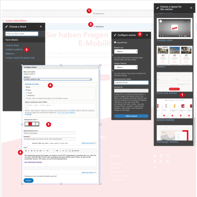 3. Füge der Section die Komponente Callback webform über "Add block" hinzu.
