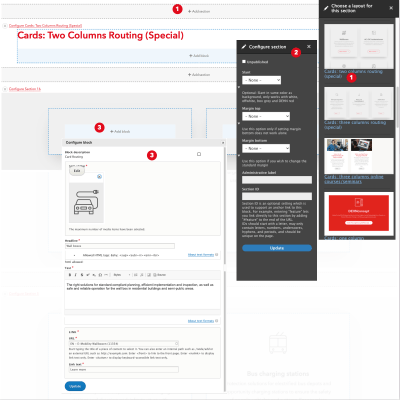 1. Füge die Section Cards: Two Columns Routing (Special) hinzu.