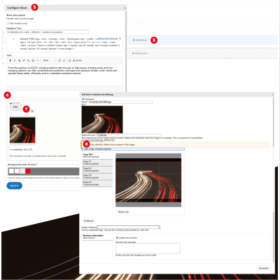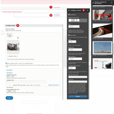 4. Wähle ein Bild aus der Mediendatenbank oder füge ein neues über "Datei auswählen" hinzu (2560 x 1440 px). Wenn Text über dem Bild liegen soll, so füge diesen unter Headline Text ein und wähle vorab unter "Headline Hierarchy" "H2" aus.