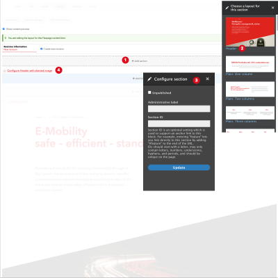 Auf dieser Seite werden sämtliche Konfigurationen der Komponenten einer Kategorie-Seite, am Beispiel der Kategorie E-Mobility, Schritt für Schritt erläutert. Über das Inhaltsverzeichnis (Übersicht) gelangt man per Sprungmarke zur gewünschten Komponente.