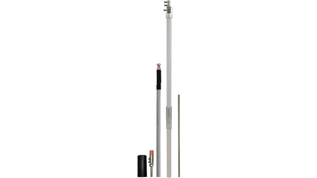 Fangeinrichtung zum Einhalten des Trennungsabstandes. Bestandteile: Stützrohr (GFK/Al) D = 40 mm, l = 2.400 mm, Fangspitze (NIRO) l = 500 mm, HVI light plus vorkonfektioniert für Rohrinnenverlegung.
