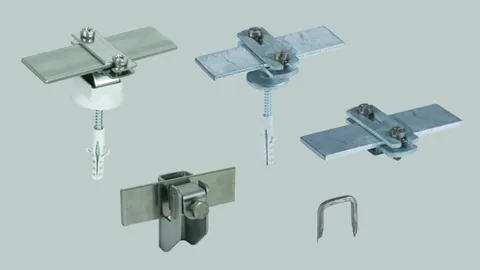 Holdere til fastgøring på flade tage samt pap-, metal-, tegl- og skifertage. Til fastgørelse af tråd og fladbånd på forskellige tagtyper eller på facade.