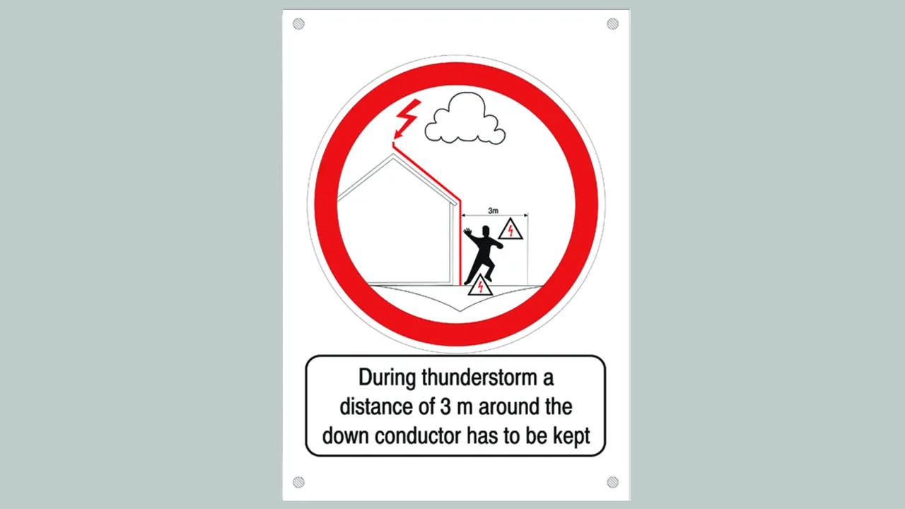Påbudsskilt skridt- og berøringsspænding Påbudsskilt skridt- og berøringsspænding ved fare for berørings- og skridtspænding for Levende væsner iht. kravene i DIN EN 62305-3 (VDE 0185-305-3) Tosproget udgave (tysk på forsiden/engelsk på bagsiden)