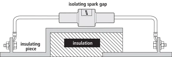 - Til udligning over f.eks. isolerende flanger i katodisk beskyttede rørnet