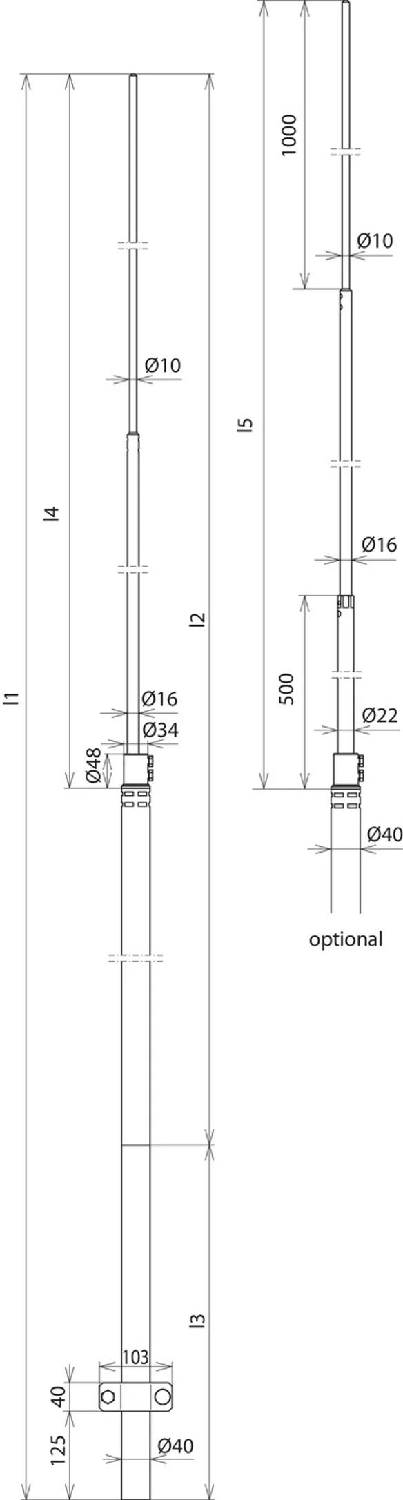 – Rør Ø40 x 5 mm med holder Ø22/16 mm