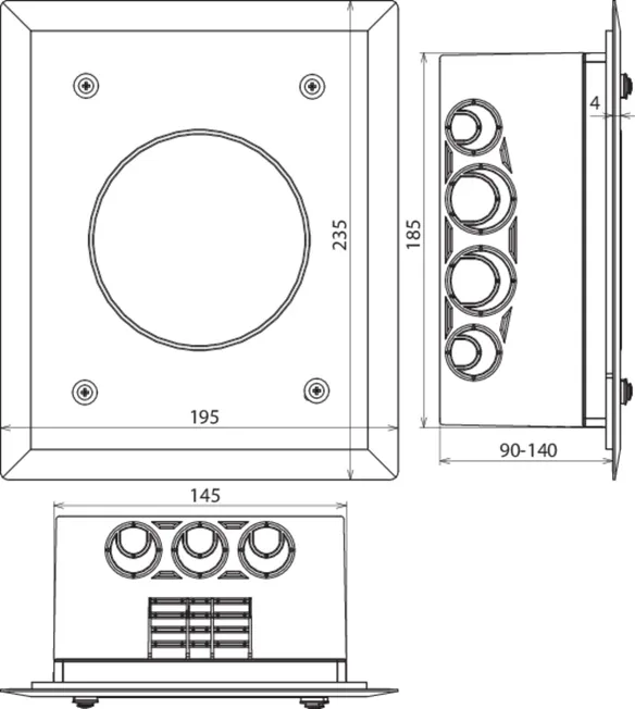 | Indbygningsmål | 90-140 mm |