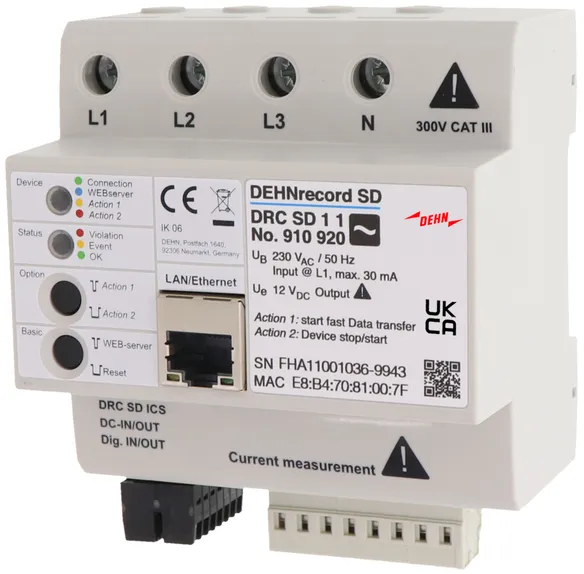 | Måleområde impulsstrøm (8/20 µs) (10/350 µs) | 4-100 kA |