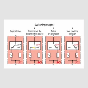 - Kombineret skille- og kortslutningsanordning med sikker elektrisk isolering i beskyttelsesmodulet (patenteret SCI-princip)