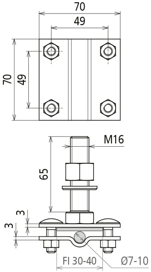 | Klemmeområde (rund / flad) | 7-10 / 30-40 mm |