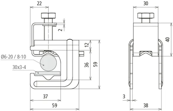 | Klemmeområde (flad / flad) | (+/II) 30 x 3-4 / 30 x 3-4 mm |