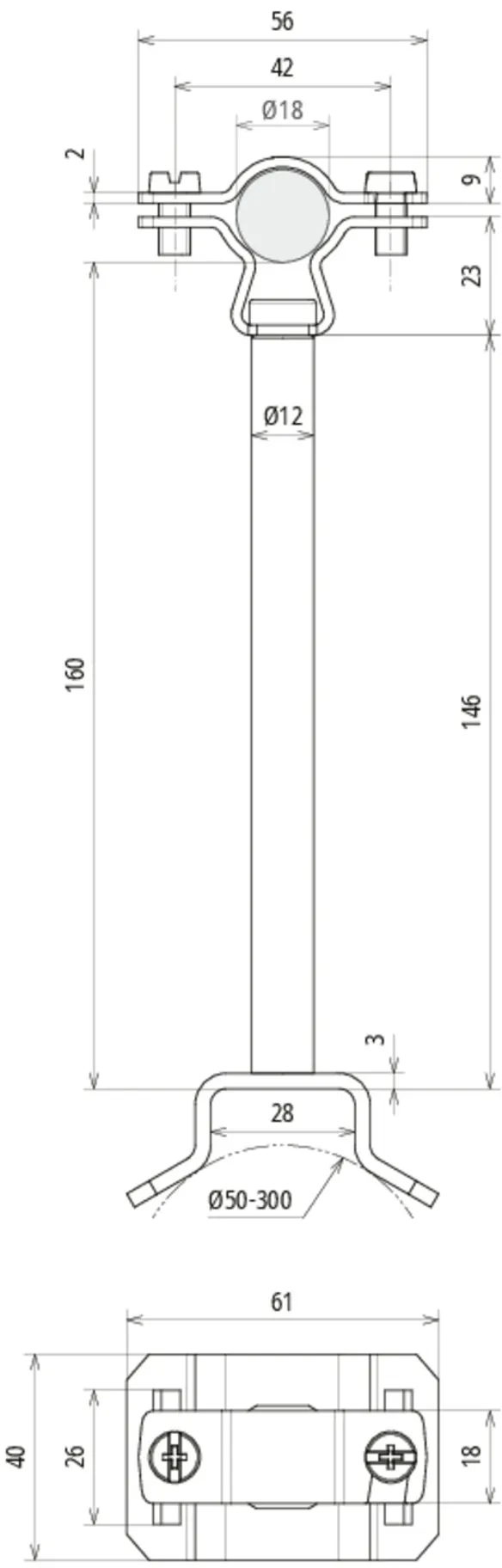 | Klemmeområde (rør) | 50-300 mm |