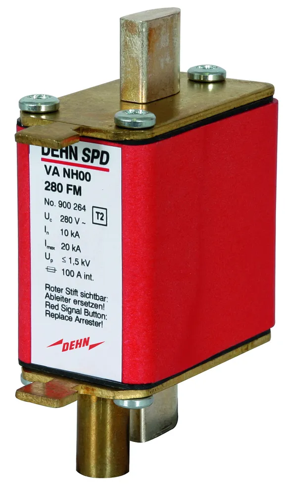- Zinkoxidvaristor mit Überwachungseinrichtung, Abtrennvorrichtung und integrierter Ableitervorsicherung (VA NH... zusätzlich mit in Reihe geschalteter Funkenstrecke)