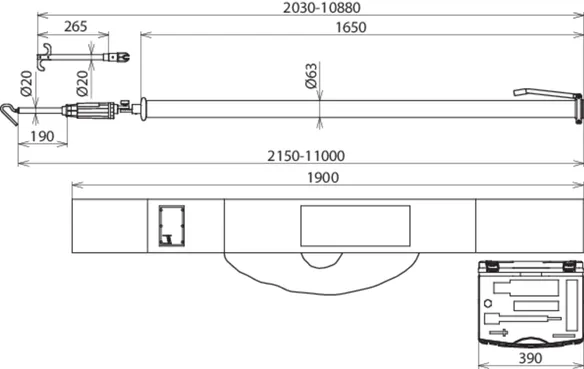 Gesamtlänge (lG max / IG min ) 11000 / 2150 mm