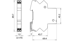 Platzsparender, kompakter Überspannungs-Ableiter in 6 mm Baubreite und Push-In Anschlusstechnik mit Statusanzeige. Fein begrenzender, einstufiger Überspannungsschutz mit leistungsfähigen Dioden zum Schutz von 2 Einzeladern mit gemeinsamen Bezugspotential sowie unsymmetrischer Schnittstellen.