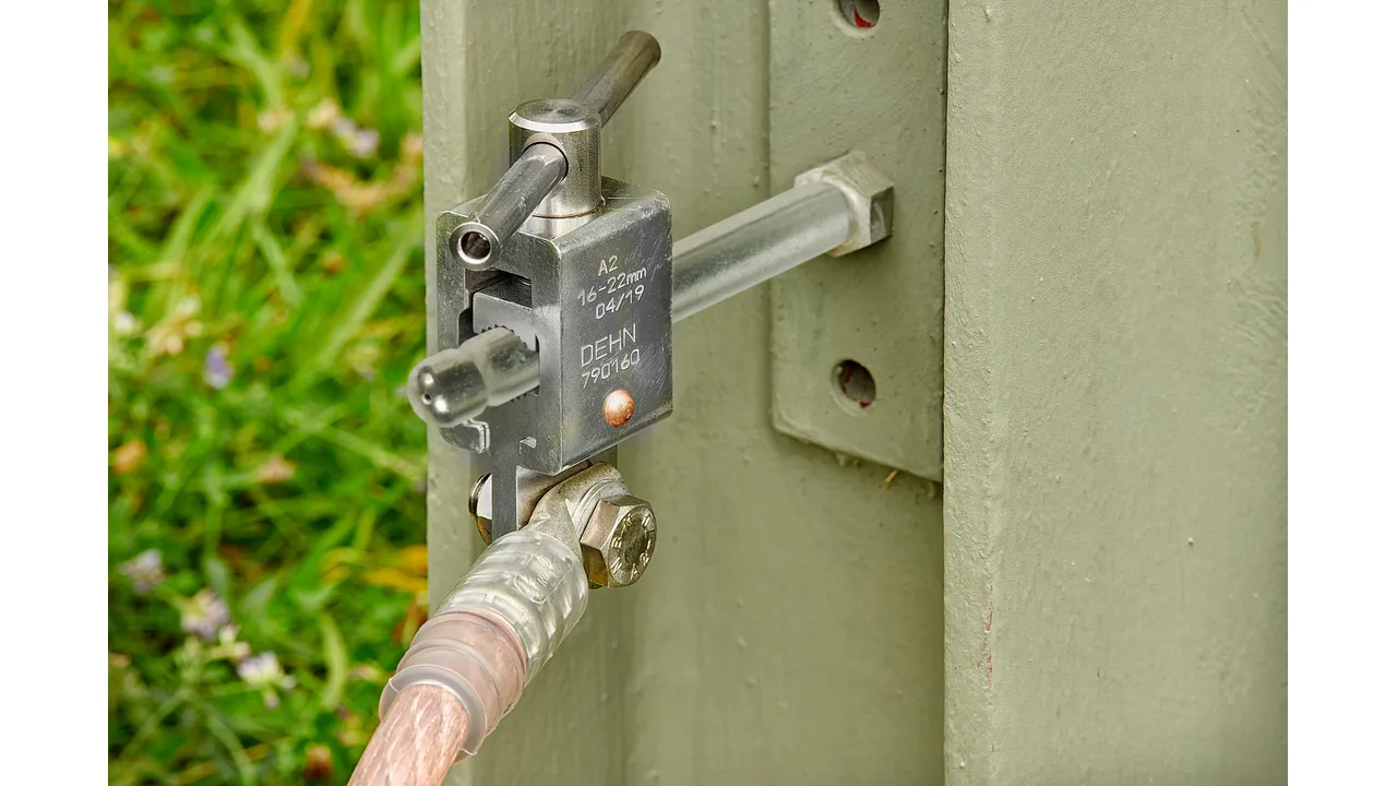 - Zum erdseitigen Anschluss an Kugelfestpunkte, T-Anschlussbolzen, Rund- und Flachleitern, Anschlussstücke und Flachprofile