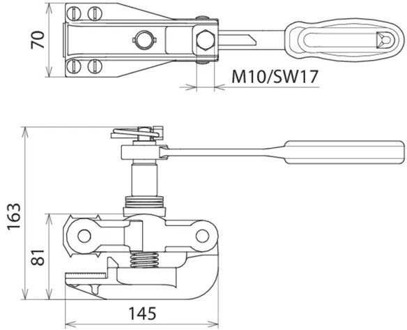 Mit abnehmbarem Knebel (Arretierungsfeder).
