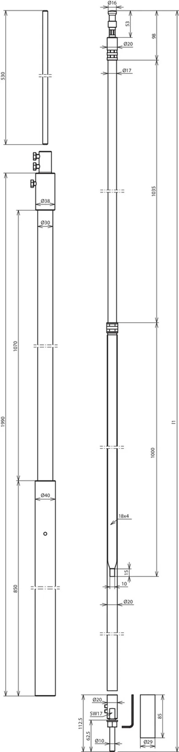 | Länge Stützrohr | 1990 mm |