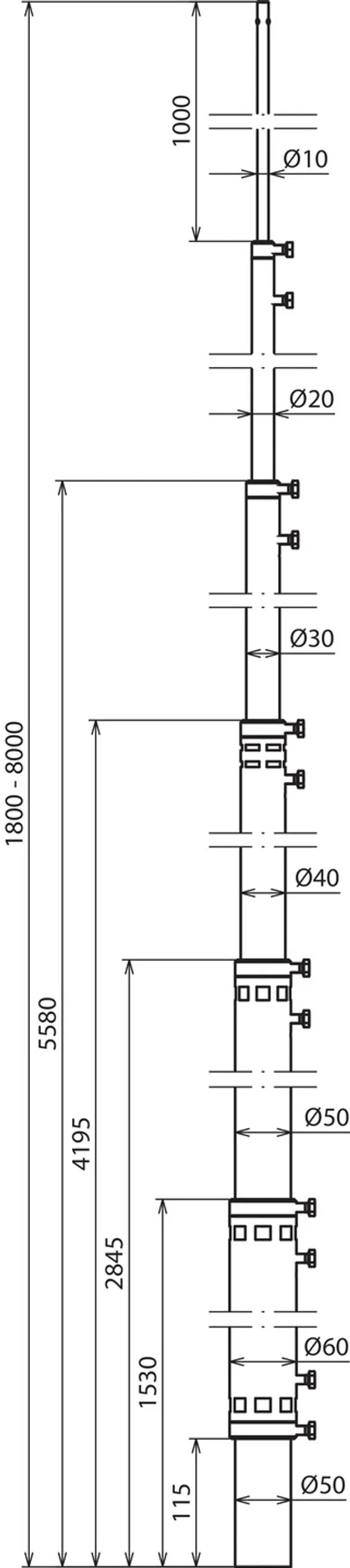 | Fangmast (Ø Länge) | 50/60/50/40/30/20-7000 mm |