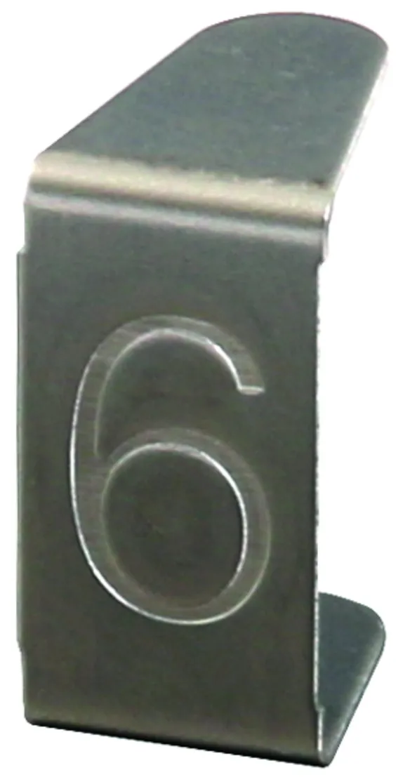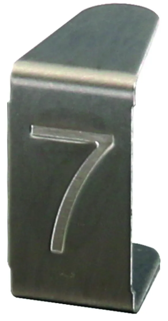 Nummerneinsatz mit Prägung zur werkzeuglosen Montage im Nummernschild mit Schlitz (Art-Nr. 490 100, 490 110, 490 116).