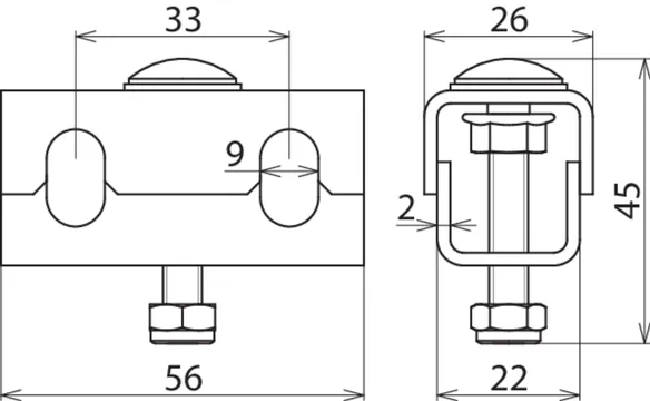 | Befestigungsbohrungen für Kabelbahn | [4x] 9 x 20 / [1x] 9 x 9 mm |