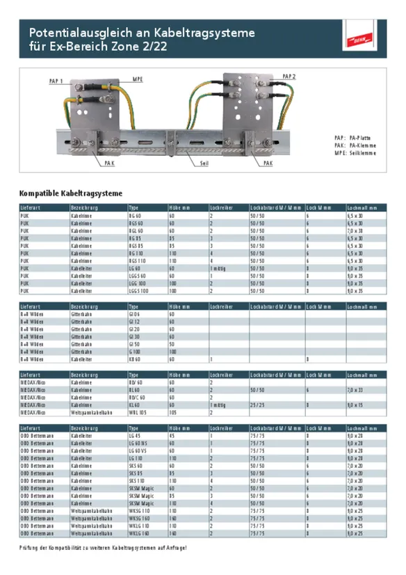 | Anschluss an | PAP 1 EX KB ER bzw. PAP 2 EX KB ER oder Kabelbahn bzw. Weitspannkabelbahn |
