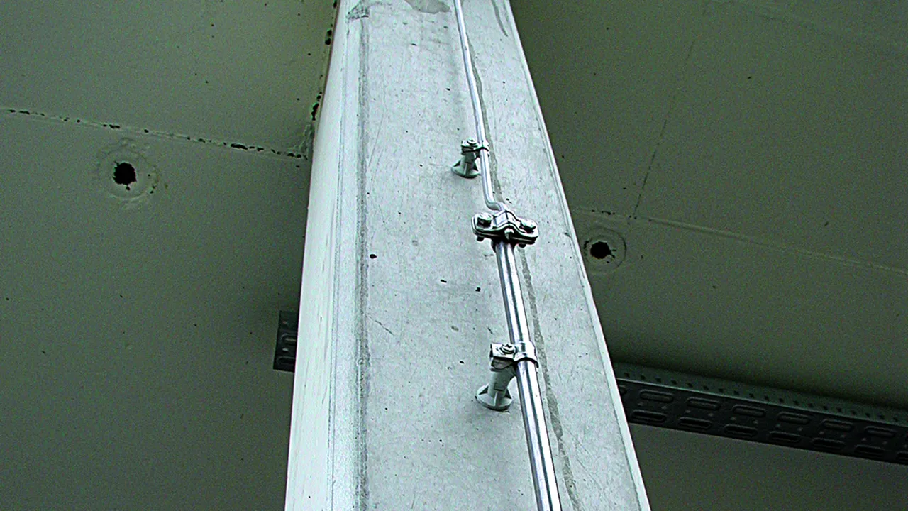 Haltersystem mit zwei Funktionen (Befestigung des Halters und des Leiters), feste Leitungsführung.