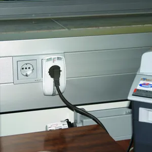 Adapter with integrated surge protection and child lock.