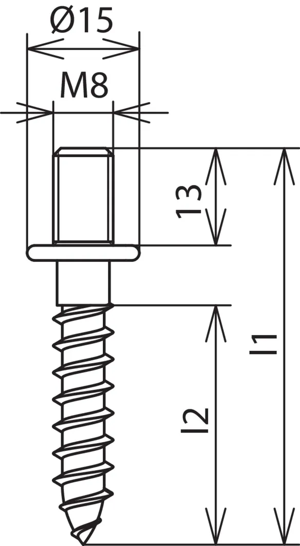 Hanger bolt for fixing of conductor, flat strp and rod holders with female thread.