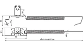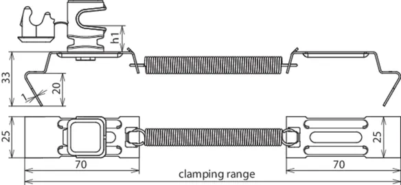 SPANNgrip fixed with a stainless steel tension spring, with DEHNgrip conductor holder, loose conductor routing, laterally adjustable