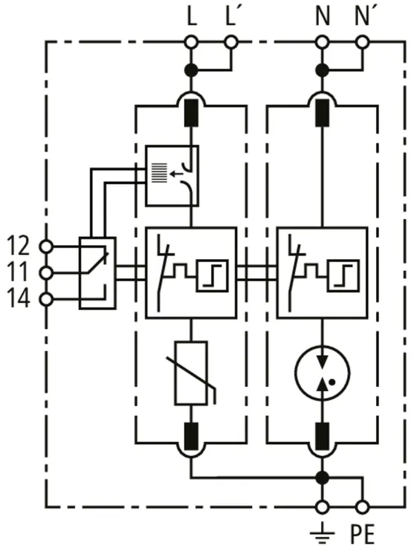 ACI switch / spark gap for single-phase 230 V TN systems, width: 2 modules