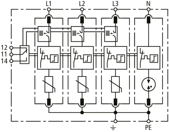 Modular surge arrester with Advanced Circuit Interruption (ACI) for TN-S systems (4+0 configuration); with floating remote signalling contact.