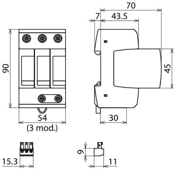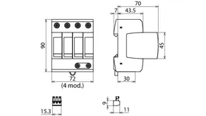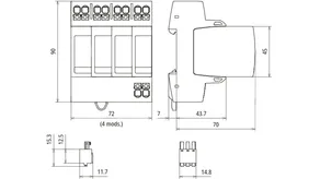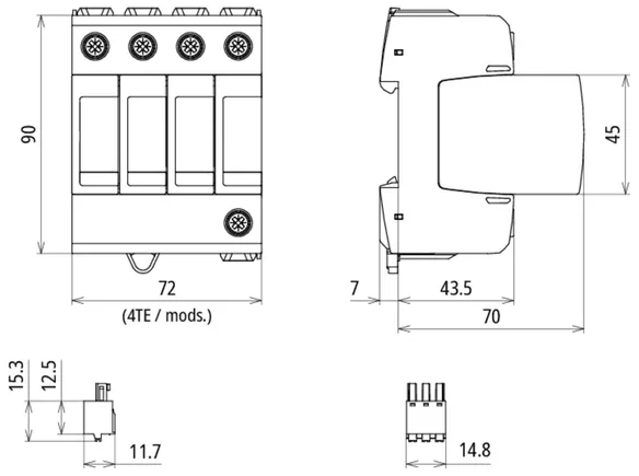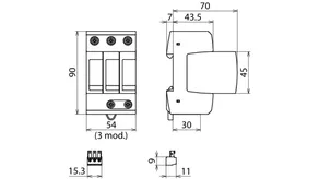 3-pole, modular, pluggable surge arrester