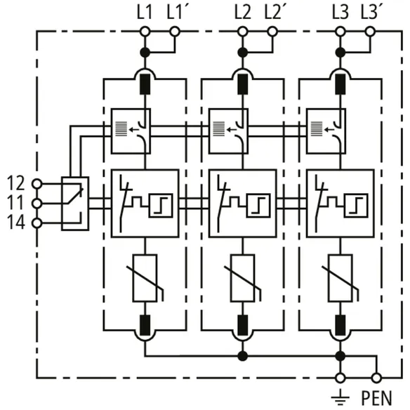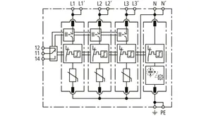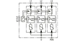 Modular surge arrester with Advanced Circuit Interruption (ACI) for TN-C systems.