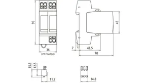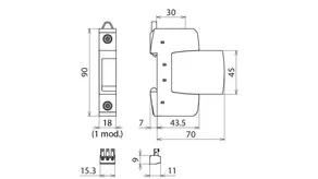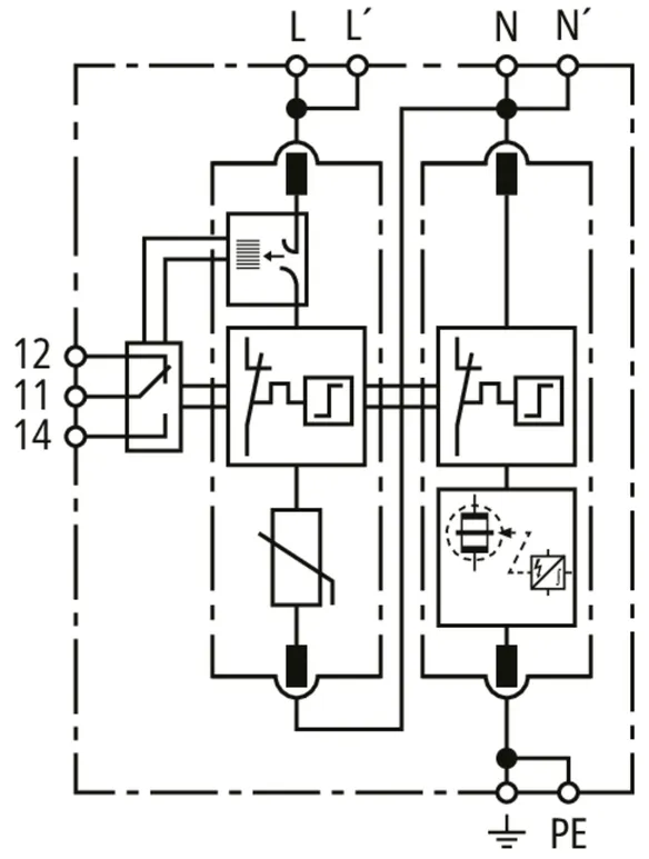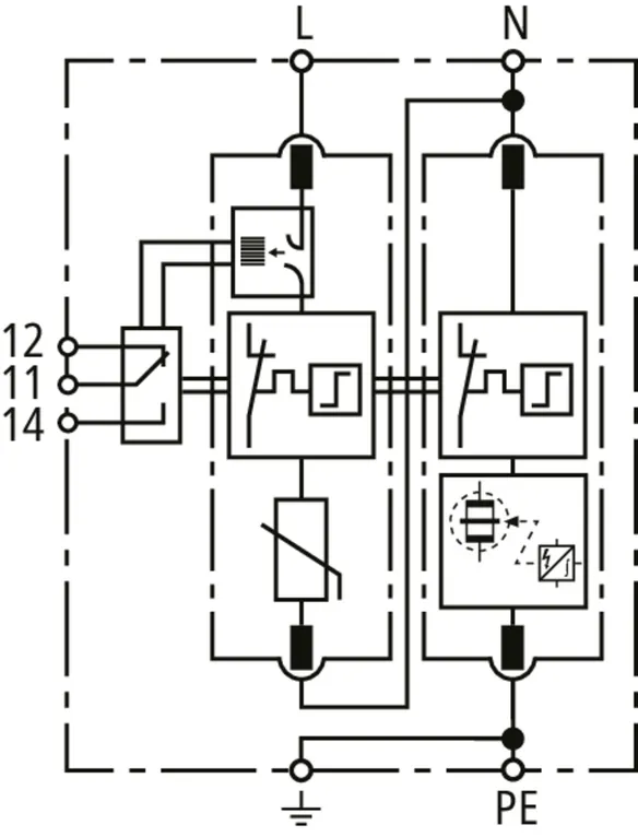 Modular surge arrester with Advanced Circuit Interruption (ACI) for single-phase 230 V-TN systems.