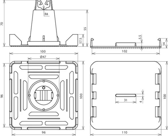 Dimensions 100 x 100 x 70 mm