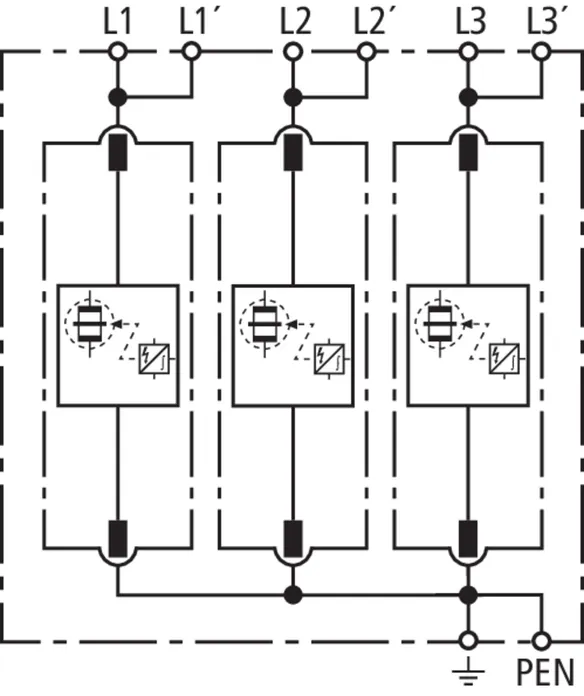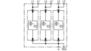 Lightning impulse current (10/350 µs) [L1+L2+L3-PEN] (Itotal ) 75 kA